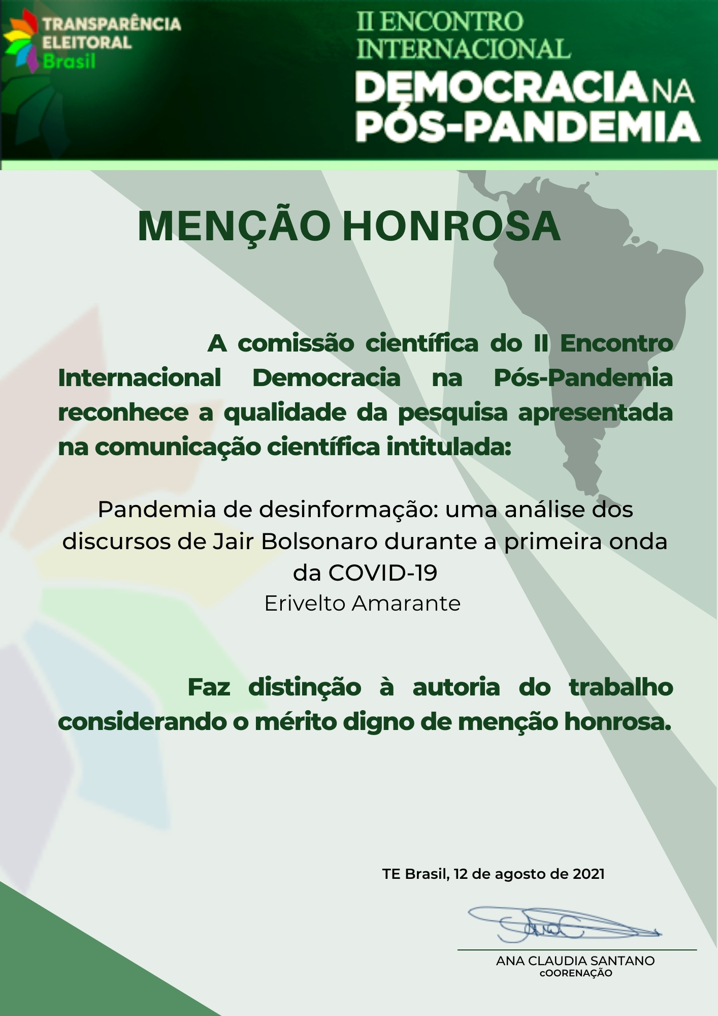 Desinformação, Pandemia, Covid-19, Análise de discurso, Jair BolsonaroResumo